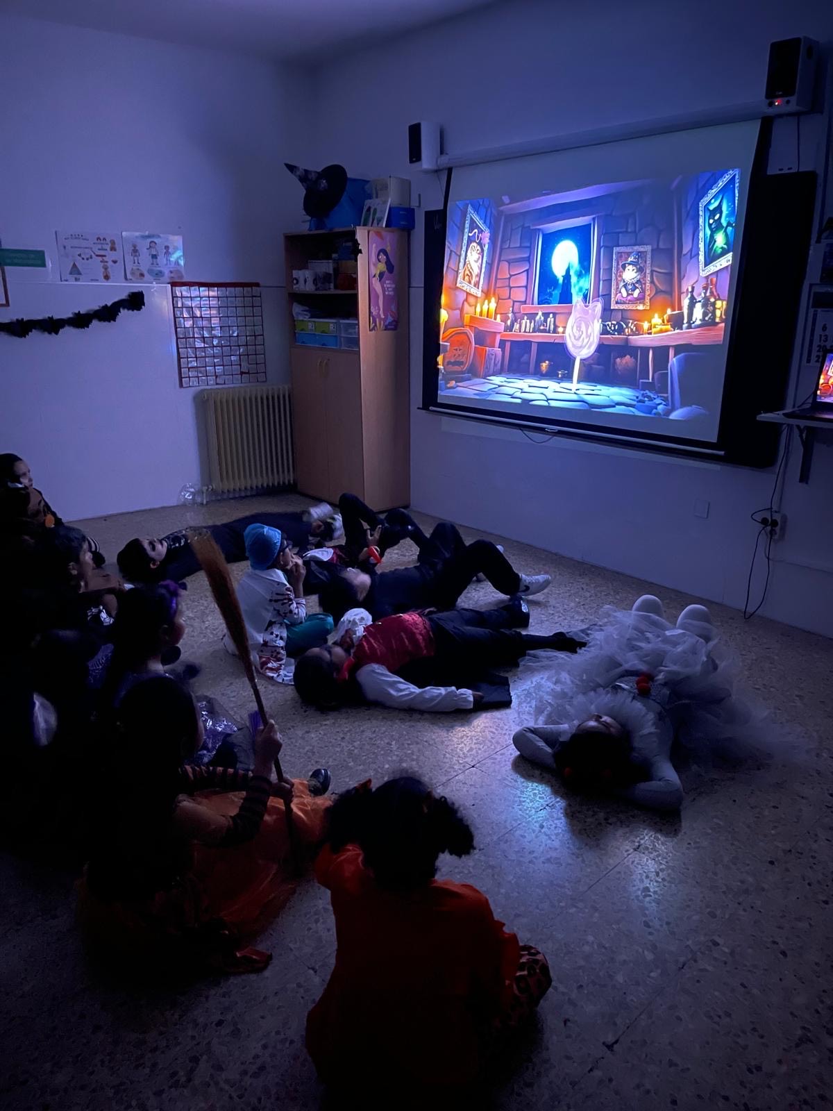 Para cerrar la jornada, disfrutaron de historias de Halloween proyectadas en pantalla grande.