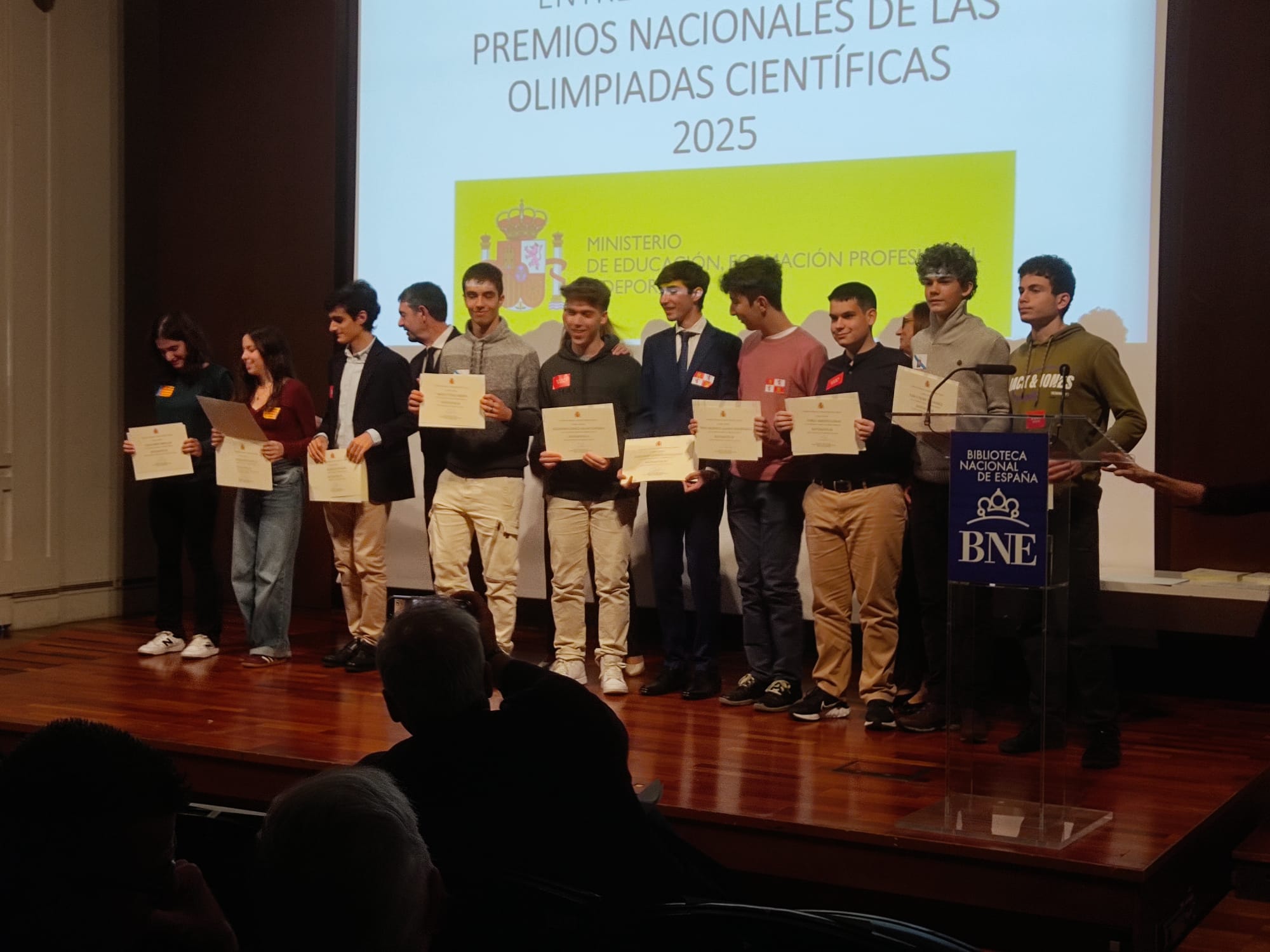 El pasado viernes 7 de noviembre, tuvo lugar en la Biblioteca Nacional de España el acto de entrega de diplomas de las Olimpiadas Científicas organizado por el Ministerio de Educación, Formación Profesional y Deportes.